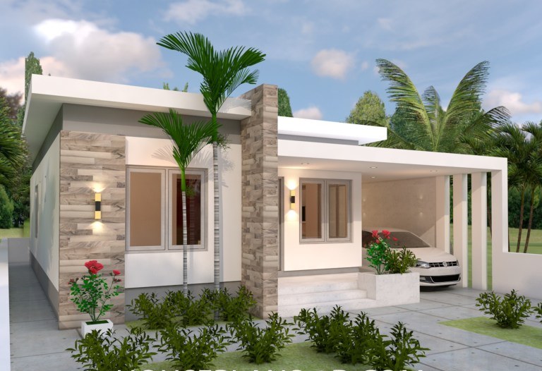 The built-in garage is designed to place two cars in. The back of the house shows just a simple structure and was enhanced with the paint scheme – using ivory and combined with light gray. This color combination is one of the most tidy and clean look for an exterior color.
