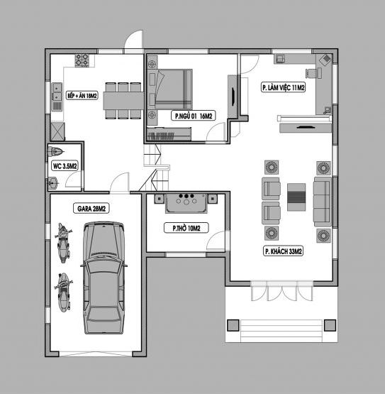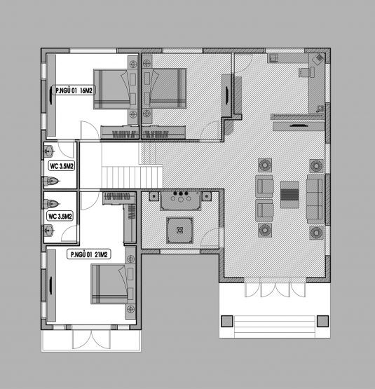 The layout was carefully drafted. The living room, kitchen and dining are well-designed as well as the bedrooms are located strategically. The layout is flexible, however, if you want to adopt this design and would like to rearrange it, you can always do so.