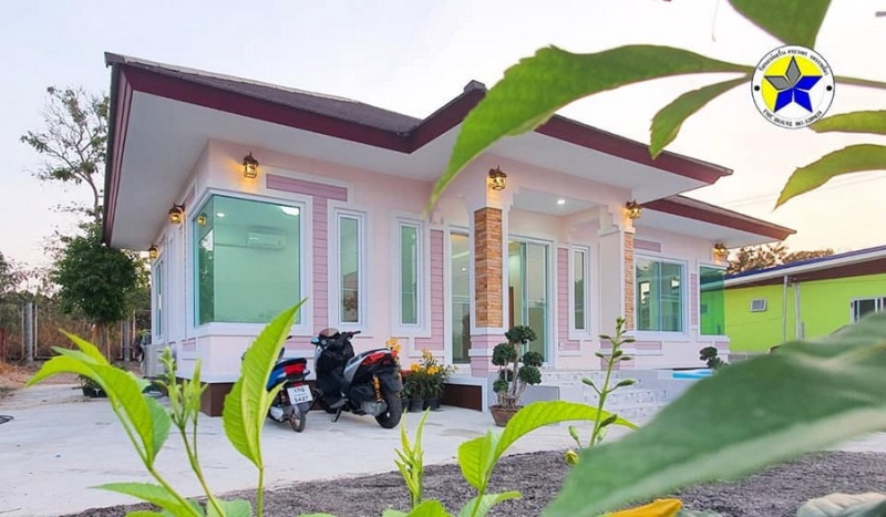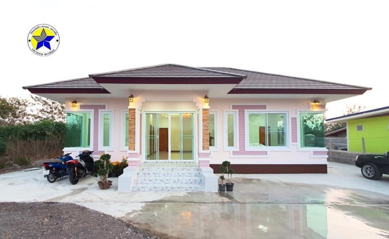 As can be seen, this model house is both an expression and impression of glamour, elegance, and sophistication. Visibly, the exterior façade expresses glamour in a soft pink color. Furthermore, the use of an enormous quantity of glass in the entire building is an impression of elegance. Additionally, the fixation, assembly, and workmanship express a high level of sophistication.