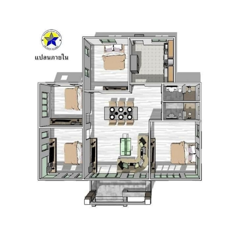 As can be seen from the design, the layout is very smart and functional with each room placed wisely on their locations. The dining room is at the center of the design which promotes excellent accessibility with respect to the other rooms of the house. The living spaces enjoy a free-flowing concept at the center of the plan. Meanwhile, the private zone of four bedrooms surrounds the living spaces.